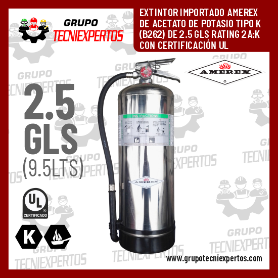 EXTINTOR IMPORTADO AMEREX H2O AGUA DESIONIZADA (B270) DE 6.6 LT (1 3/4 GLS) RATING 2A:C CON CERTIFICACIÓN UL
