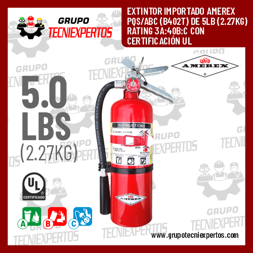 EXTINTOR IMPORTADO AMEREX H2O AGUA PRESURIZADA (240H) DE 2.5 GLS (9.5 LTS) CON CERTIFICACIÓN UL