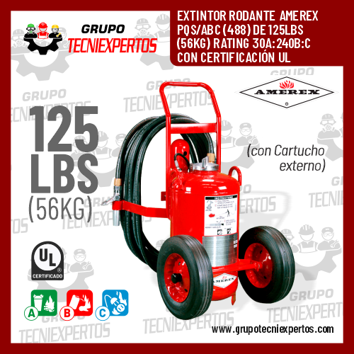 EXTINTOR RODANTE IMPORTADO AMEREX CO2 CON GAS CARBÓNICO (334) 100LBS (45KG) RATING 20B:C CON CERTIFICACIÓN UL